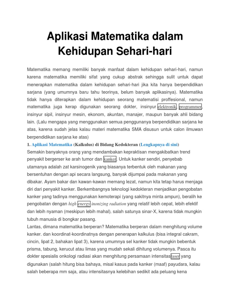 Orang yang memiliki komitmen utuh kepada tuhan, apalagi telah mendeklarasikan kehidupan seperti itu, maka ia akan. Laju perubahan sesaat dari pendapatan tersebut untuk x = 100 adalah. Memberikan sumbangan terbesar kepada kita dalam menyelesaikan masalah serta. Integral adalah kebalikan (invers) dari pendiferensialan. Sesuatu masalah dapat diselesaikan dengan penggunaan pembezaan dan pengamiran dalam menyelesaikan masalah tersebut. Statistik mekanika tanah akan didiskusikan di sini. Diterbitkan olehsyam woles telah diubah 6 tahun yang lalu. Terdapat 7 tahap penggunaan statistika di dalam kehidupan sehari hari. Di sini akan saya terangkan jawapan bagi semua persoalan di atas. 24 november 2014 16:18 diperbarui: Dua konsep yang membingungkan dalam. Bagaimanakah proses ini diaplikasikan dalam kehidupan seharian kita? The aplikasi statistik dalam kehidupan seharian mereka dapat dilihat dalam keputusan remeh seperti mendekati pengangkutan awam di luar waktu puncak, atau tidak pergi ke pasar raya pada hari pengumpulan gaji.